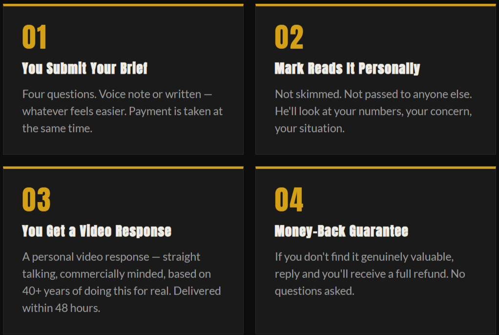 Fill in your brief below and complete the £97 payment. I will review your situation personally and come back to you with a clear, structured response within 48 hours.